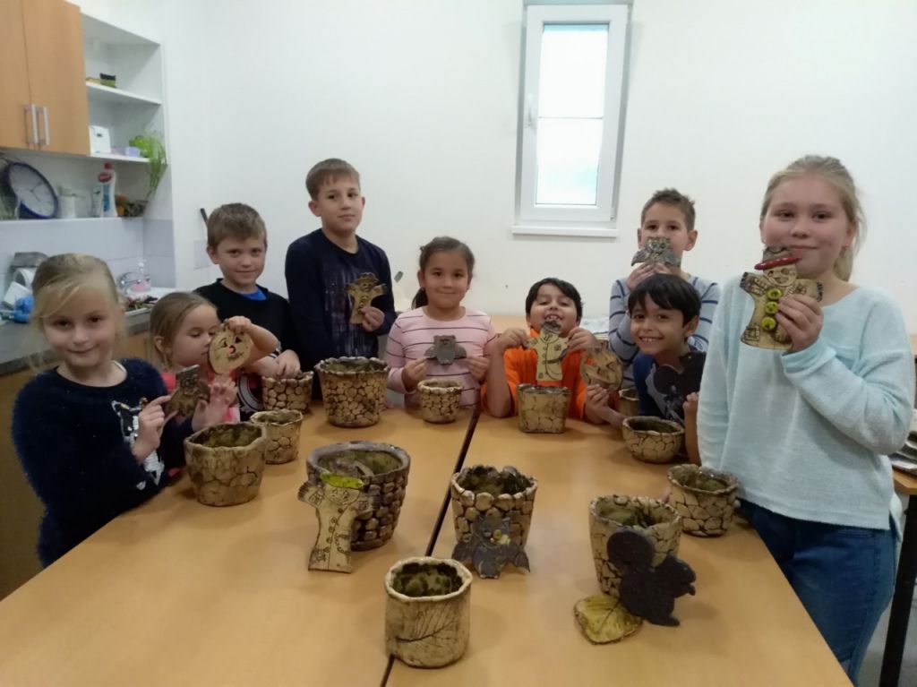 Jsme rádi, že Obec umožnila dětem - po ukončení činnosti kroužku v prostorách naší základní školy - i nadále tvořivou práci s keramickou hlínou.